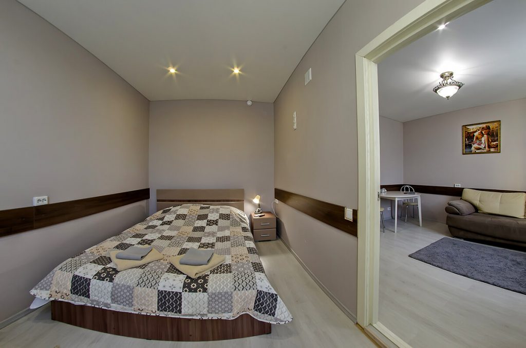 Средняя площадь номера – 18 кв.м. Есть номера как с двуспальными, так и с отдельными кроватями. Максимальная вместимость до 4 человек (есть номера с раскладывающимися диванами). Дополнительное место (диван) 500 рублей.